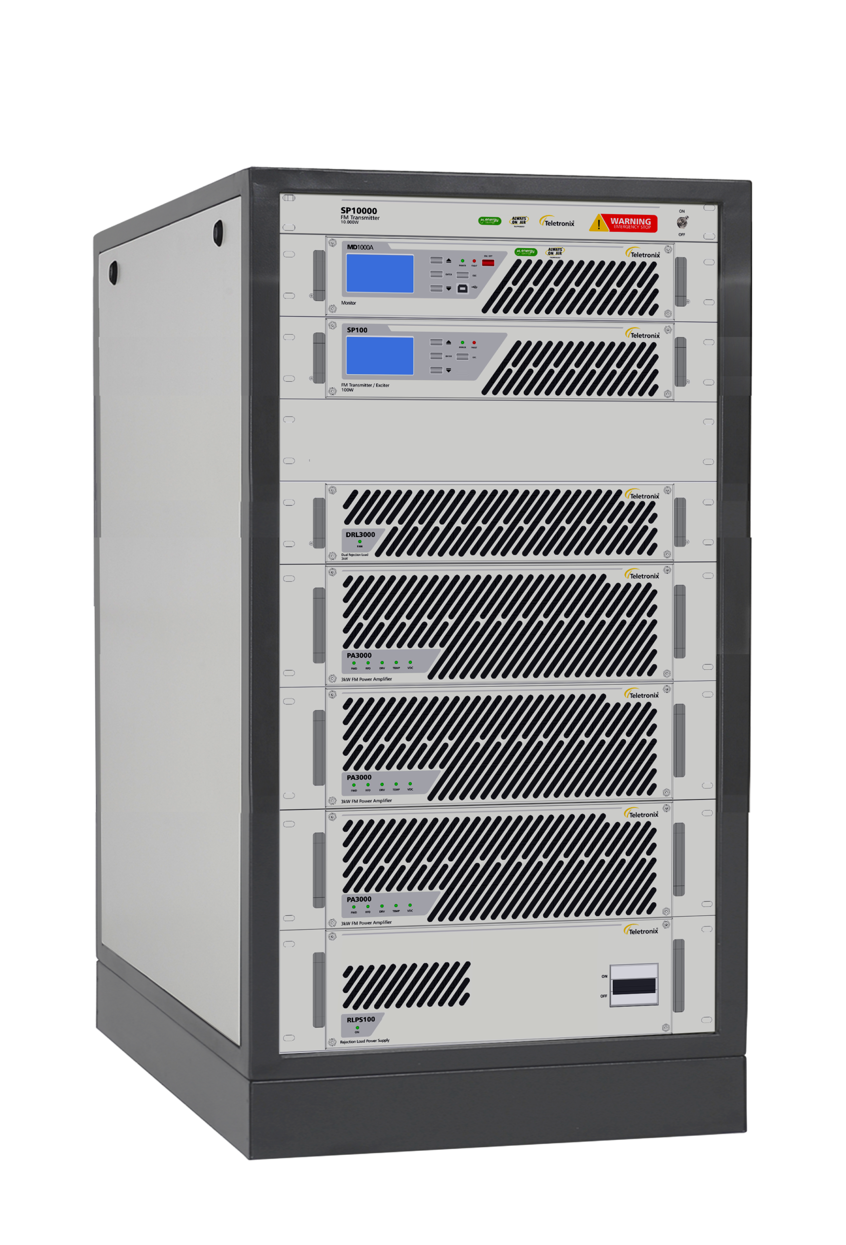 O Transmissor FM de 10.000W, Modelo SP10000 Ágile da Linha Energy Saving, apresenta uma solução ultracompacta e eficiente para as demandas contemporâneas de transmissão. Este transmissor de estado sólido refrigerado a ar integra a tecnologia comprovada Always On Air, oferecendo desempenho, confiabilidade e qualidade de classe mundial.