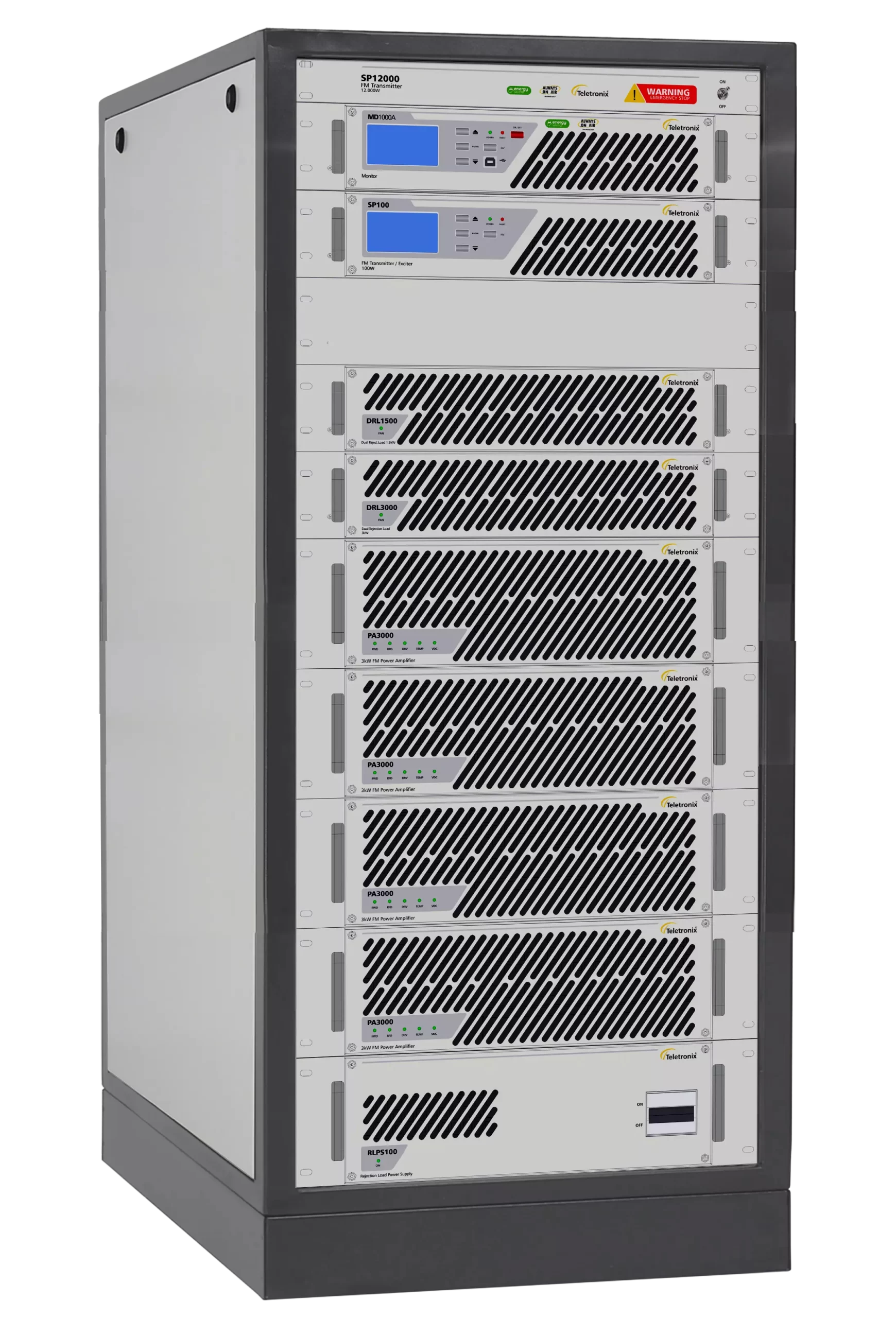 O Transmissor FM de 12.000W, Modelo SP12000 Ágile da Linha Energy Saving, apresenta uma solução ultracompacta e eficiente para as demandas contemporâneas de transmissão. Este transmissor de estado sólido refrigerado a ar integra a tecnologia comprovada Always On Air, oferecendo desempenho, confiabilidade e qualidade de classe mundial.
